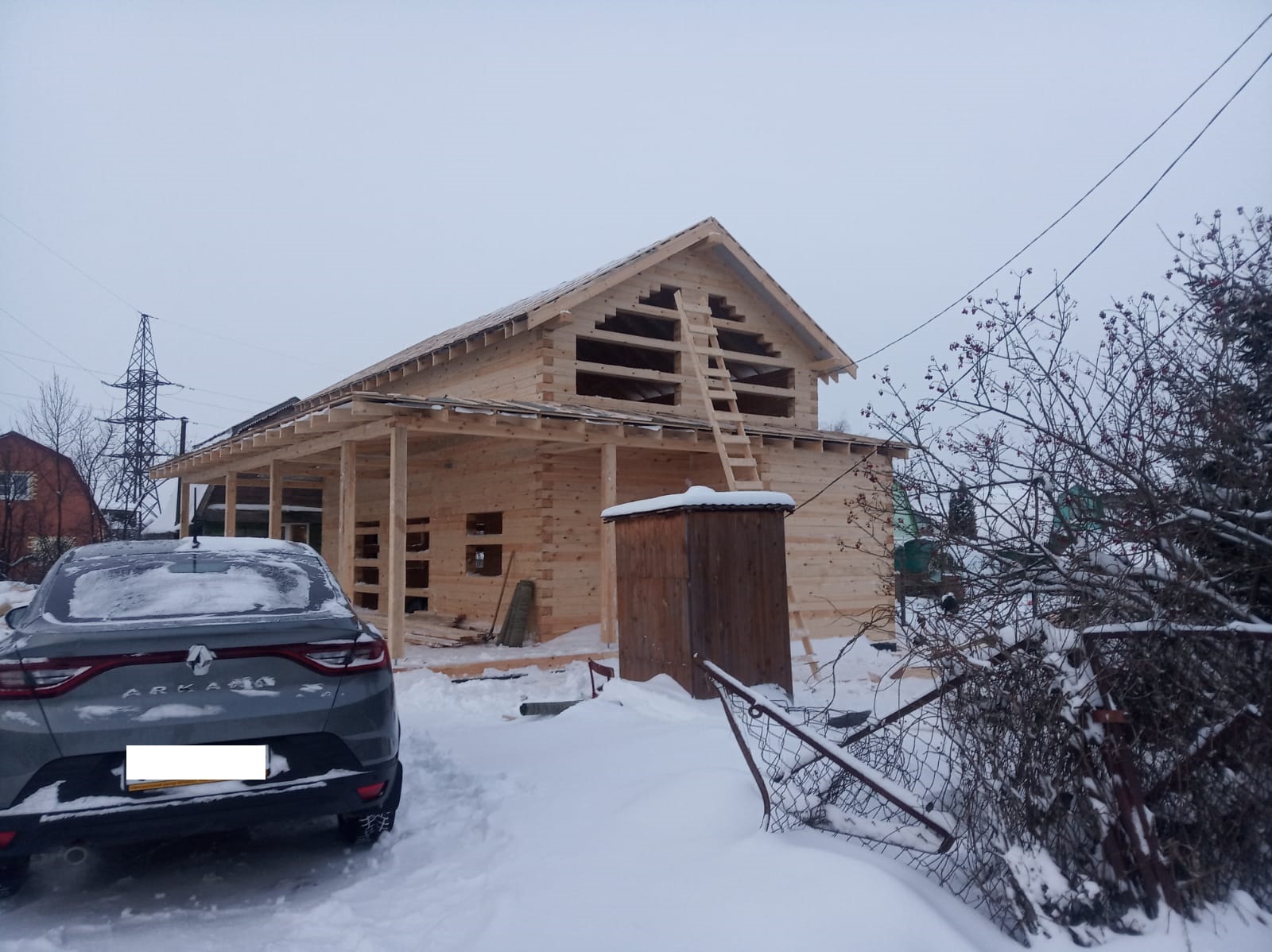 Закончено строительство небольшого полутораэтажного дома из бруса 150х200 мм естественной влажности. Дом сдан под усадку. Дальнейшие работы запланированы через несколько месяцев.
