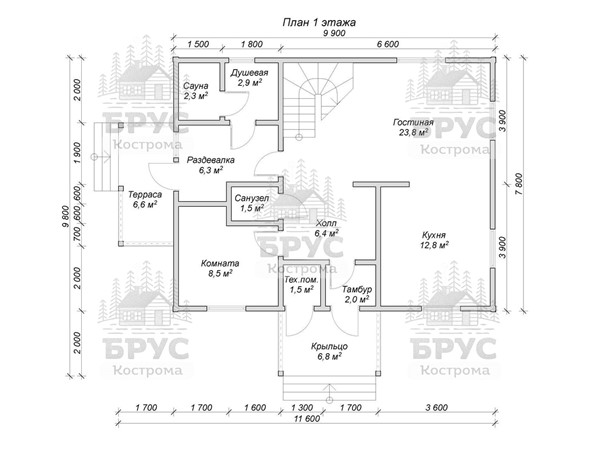 • Размеры: 9.8 x 11.6 м