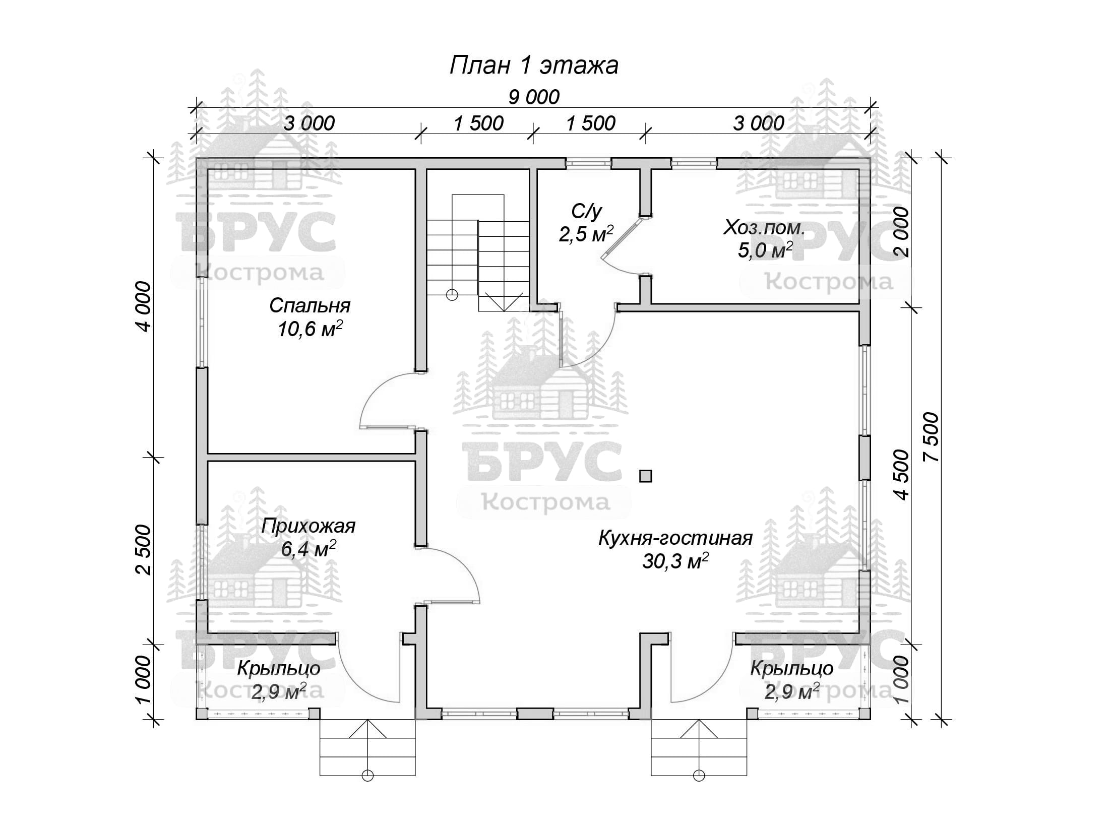 • Размеры: 9 x 7.5 м