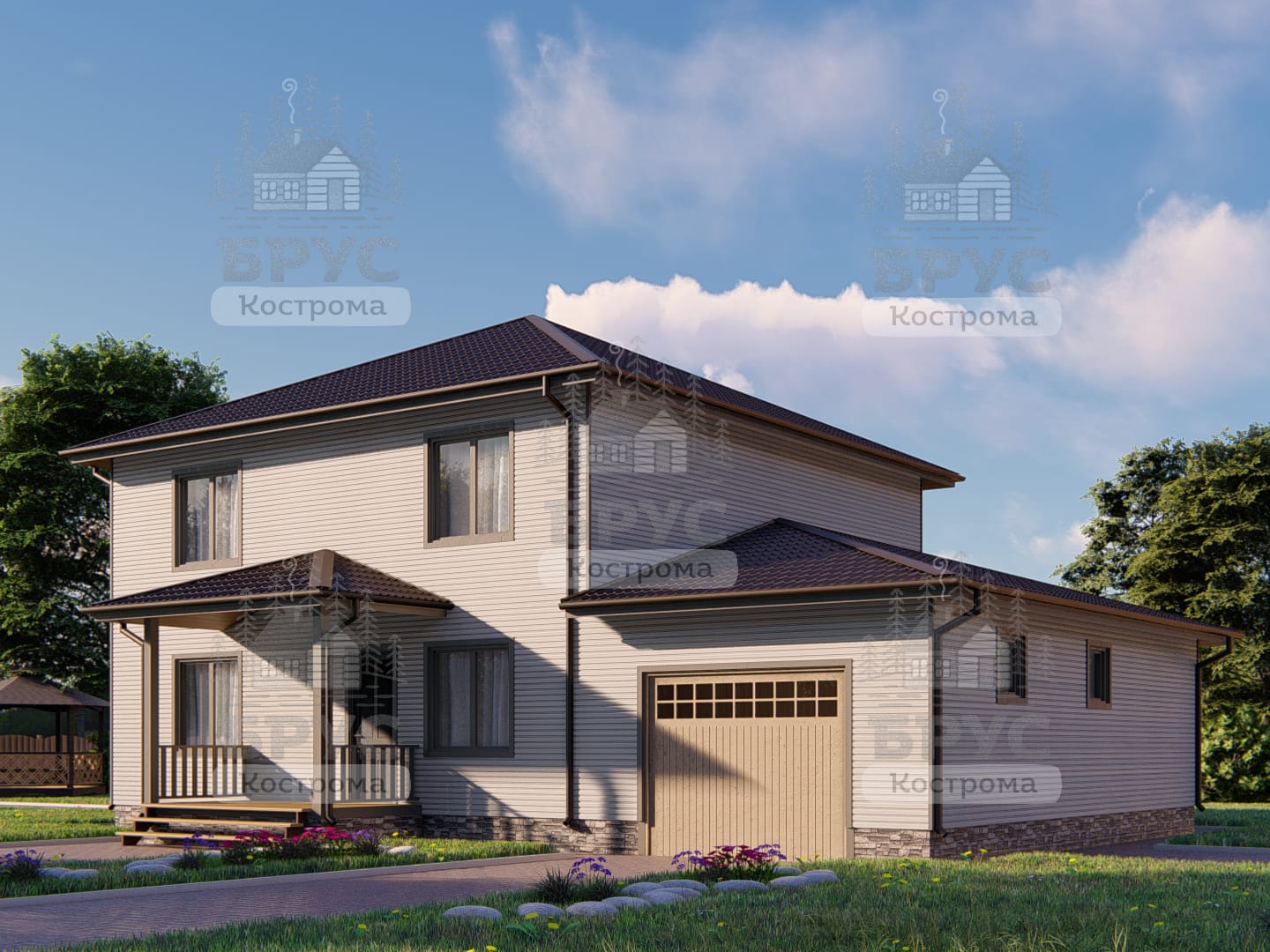 Двухэтажный дом для круглогодичного проживания с гаражом