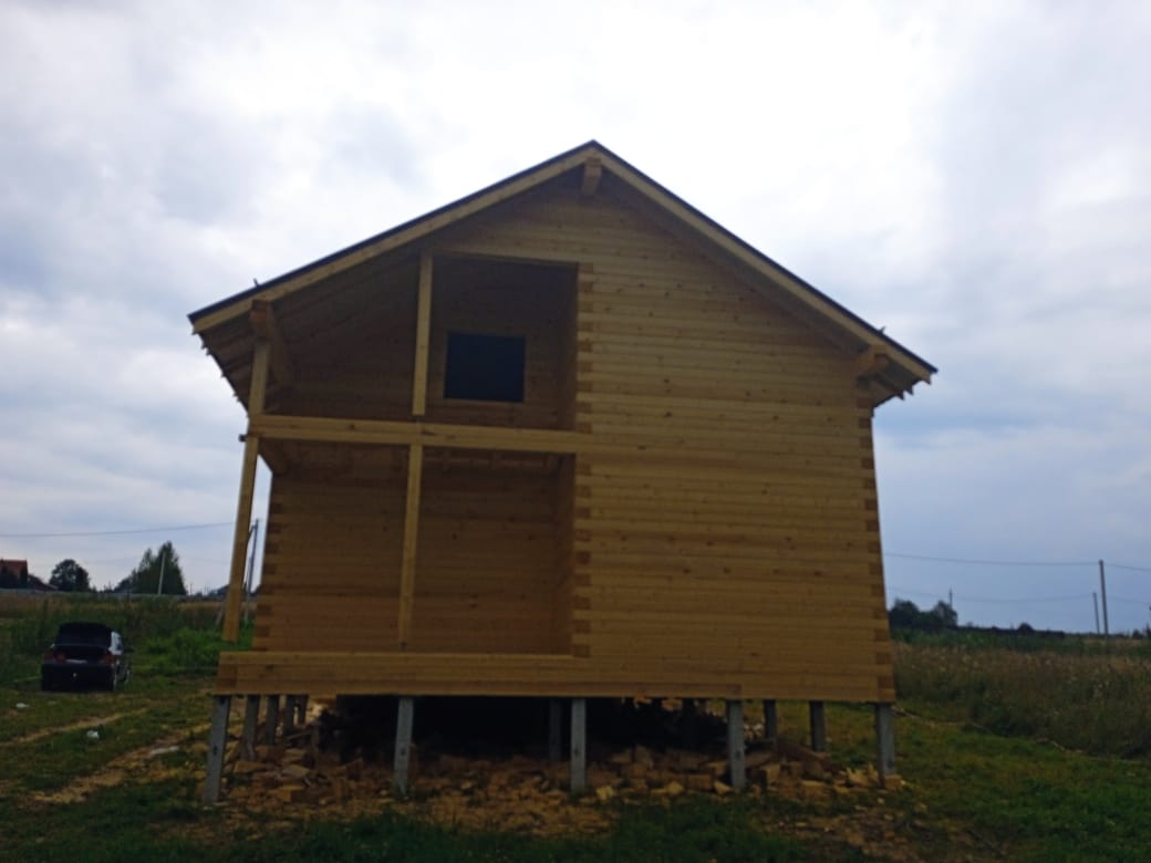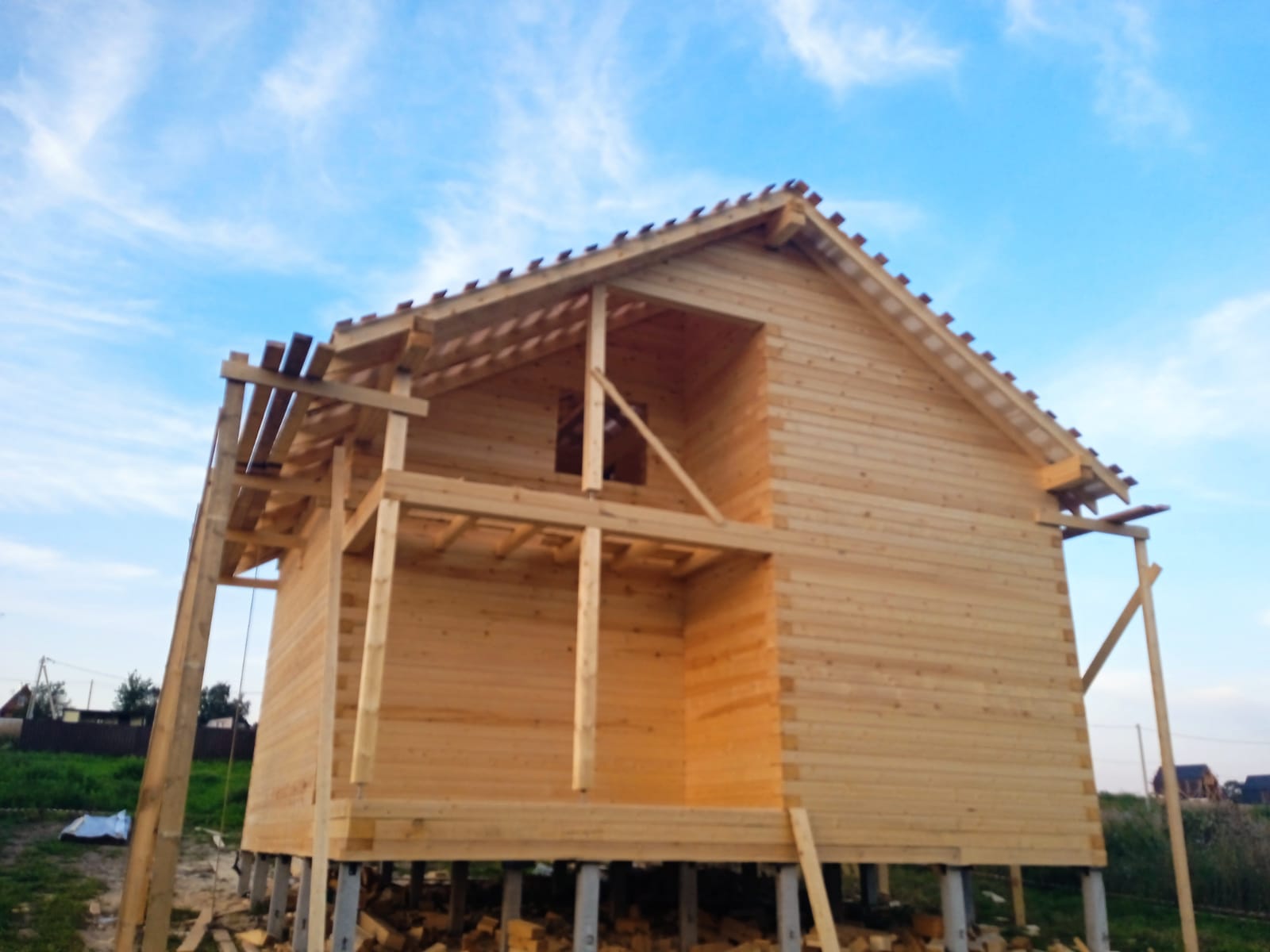 Дом из бруса 8х8 м под усадку с фундаментом и крышей
