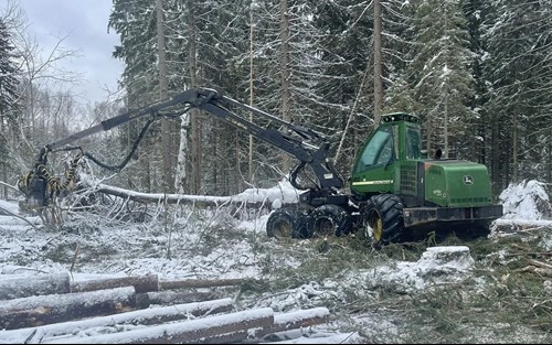 Мы самостоятельно заготавливаем лес на севере Костромской области с помощью мощных производительных машин - харвестеров. Один такой харвестер может заготавливать за смену до нескольких лесовозов.