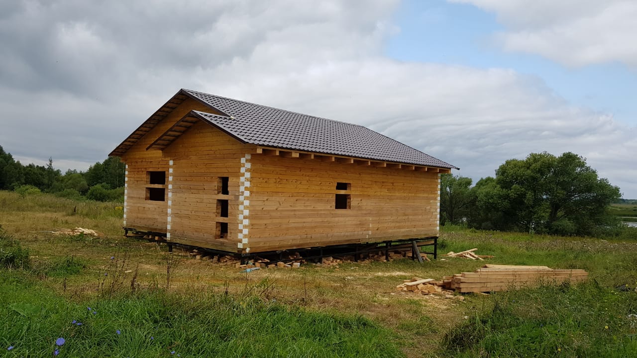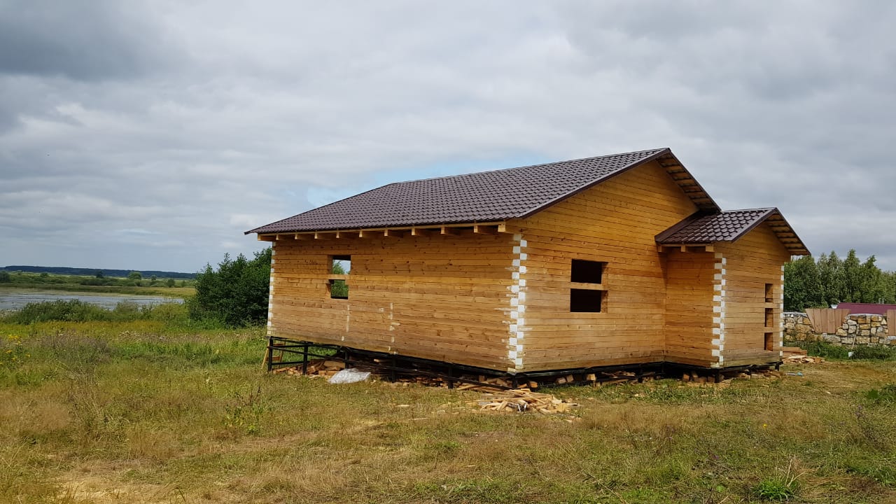 Неделю назад закончили строительство дома в селе Засечье Спасского районе Рязанской области. Теперь дом будет находиться под усадкой примерно полгода, после чего начнется этап внутренней отделки. Крыша установлена из металлочерепицы, под домом свайно-винтовой фундамент, стены из профилированного бруса 195*145 мм из сосны пород Северного леса (заготовлено зимой 2018 года в г. Чухлома Костромской области).