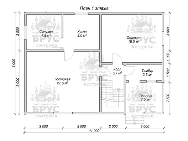 • Размеры: 11 x 8 м