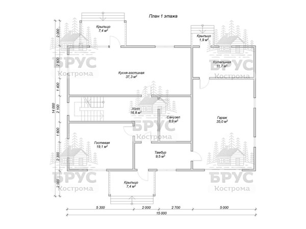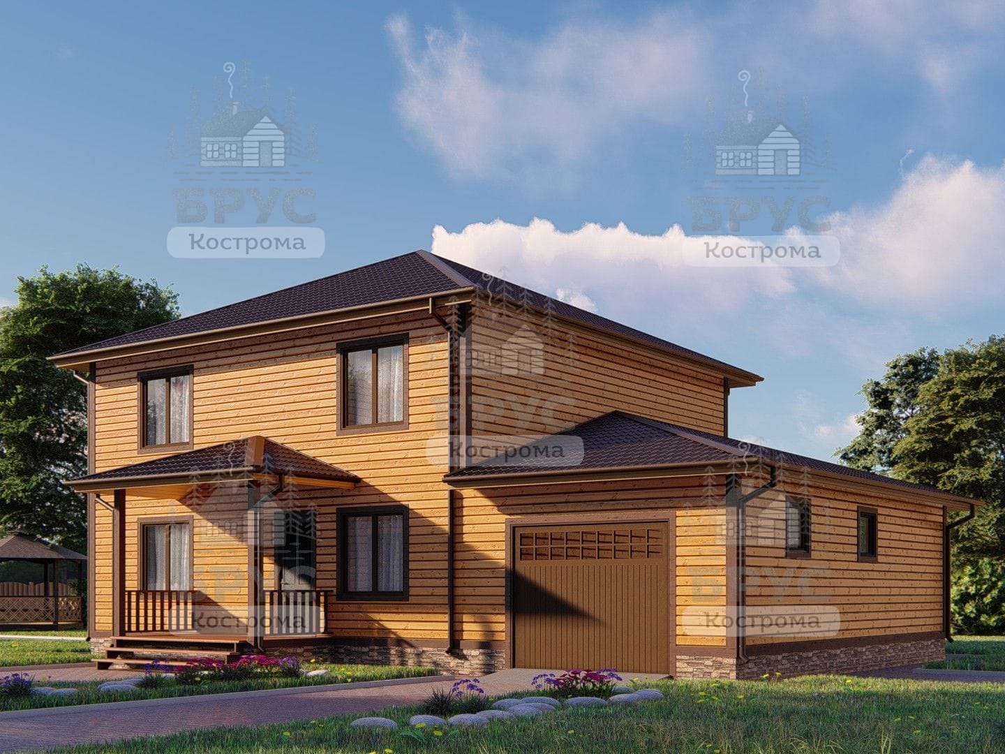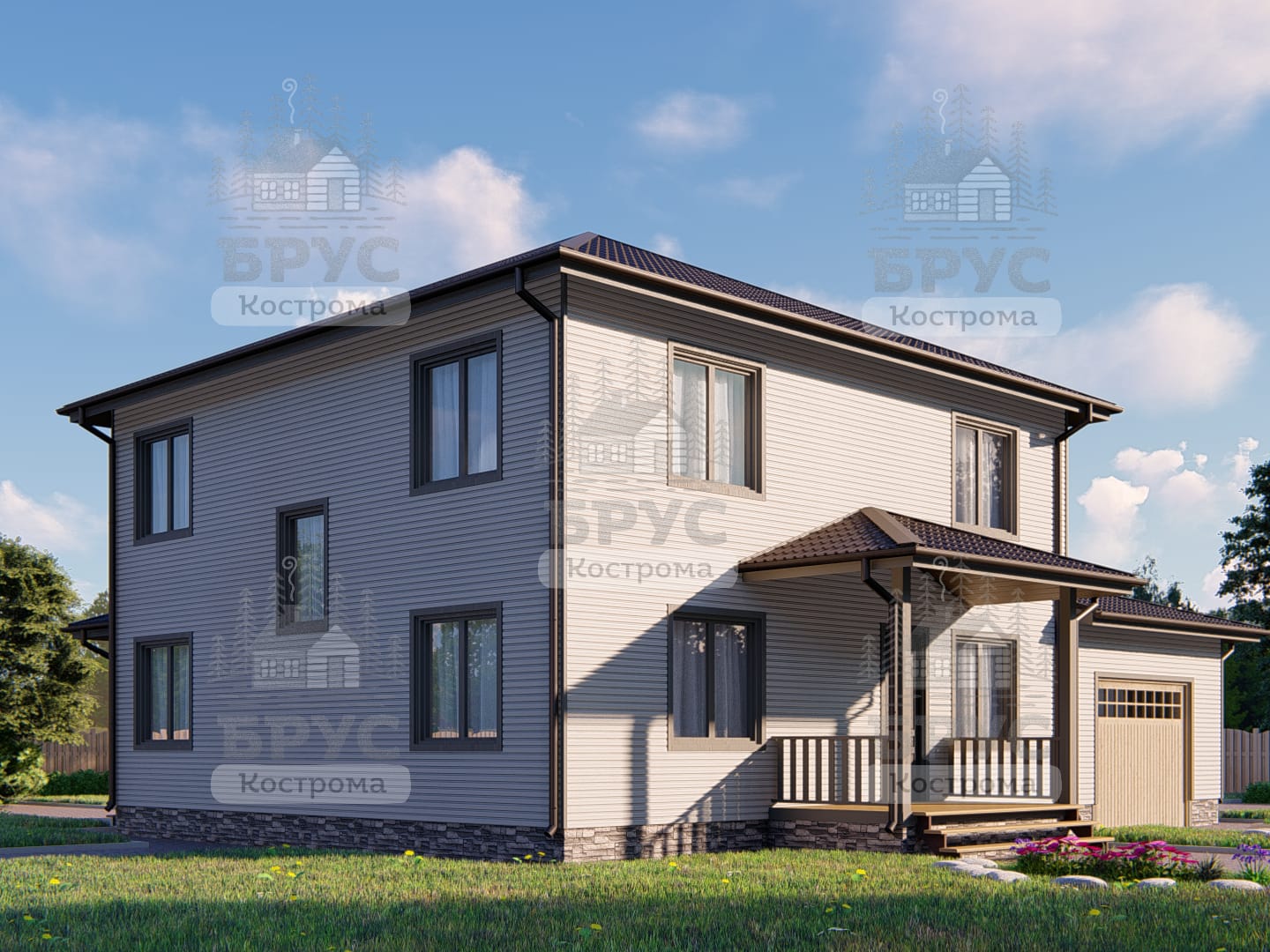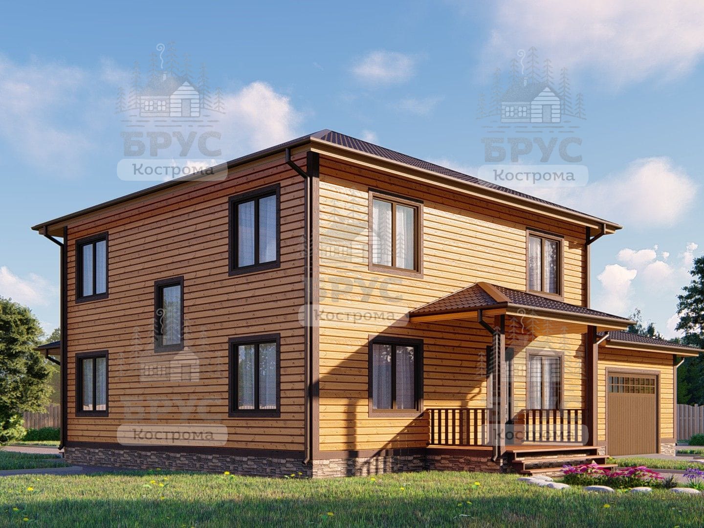 Двухэтажный дом для круглогодичного проживания с гаражом